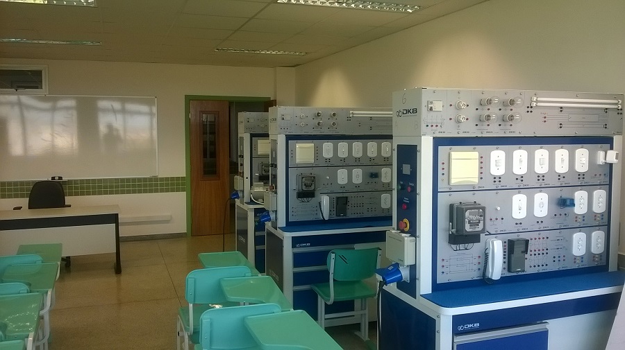 São laboratórios de Automação, Instalações Elétricas, Eletricidade e de comandos.