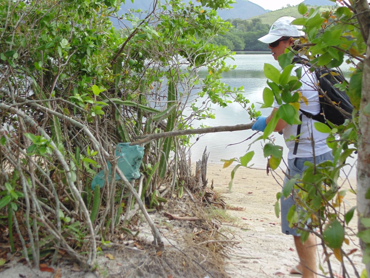 Natural Municipal Morro da Pescaria e no domingo, dia 09/06 o grupo participando do mutirão de limpeza da prainha do mangue de Olaria.