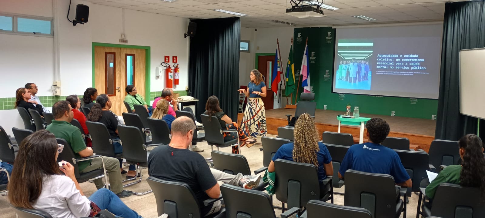 A atividade foi conduzida pela Dra. Michelle Daniel, especialista no atendimento a adolescentes, famílias e equipes pedagógicas e atuante na promoção da saúde mental e bem-estar na educação. O objetivo foi inspirar os profissionais da instituição a refletir sobre a importância de valorizar o autocuidado como parte essencial do serviço.